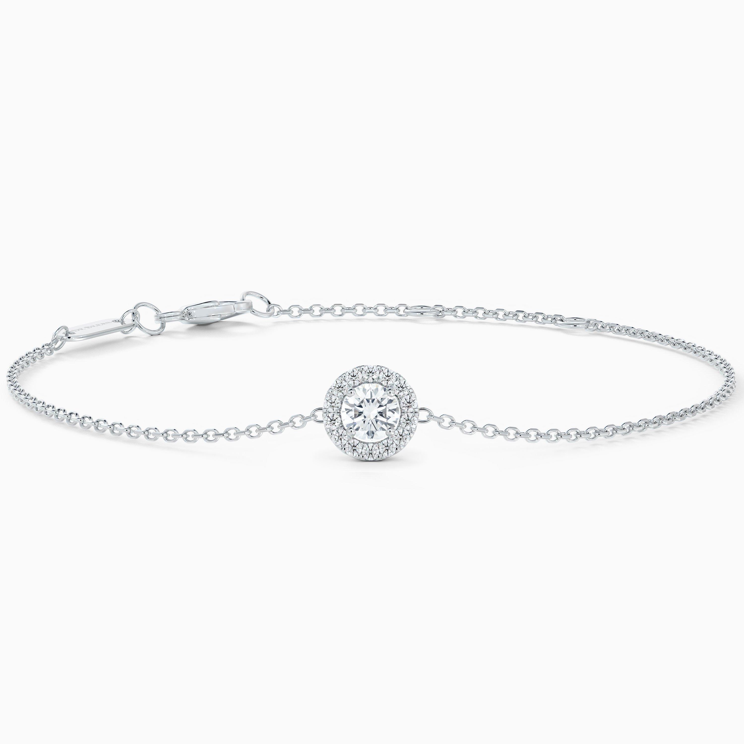 An elegantly understated style, this diamond bracelet draws on our iconic Aura motif, characterised by micropavé diamonds encircling solitaires. The ~0.20 carat round brilliant solitaire is haloed by micropavé and set on a fine 18K white gold chain, marrying our diamond expertise with a refined design. As ever, the natural diamonds in this bracelet are ethically sourced, chosen with an expert eye and set by hand. The resulting piece can be worn as an accent or teamed with other bracelets from our My First De Beers collection as a striking way to layer diamonds.